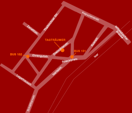 Den tagträumer erreicht man bequem mit dem Fahrrad oder der Buslinie 152; Haltestelle Ehrengutstrasse, sowie der Buslinie 131, Haltestelle Roecklplatz.